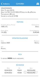 AUTO IN PRONTA CONSEGNA Proponiamo bellissima Golf 7.5 1.6 Diesel con cambio dsg 115cv 85kw , in ottime condizioni generali. Si consegna con tagliando completo e 12mesi di garanzia. Prezzo leggermente trattabile interamente finanziabile