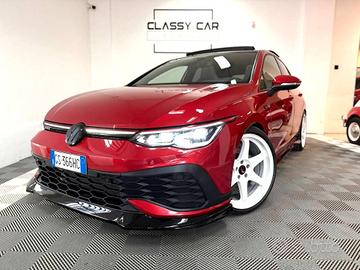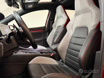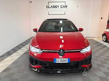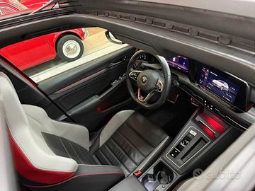 Volkswagen Golf 2.0 tsi GTI Clubsport 300cv DSG Con la Clubsport, Volkswagen ha portato il concetto di Golf GTI al livello successivo. Non e' solo questione di numeri, anche se fanno impressione, ma tutto il progetto e' stato rivisto in profondita' per creare la GTI definitiva per gli amanti delle alte prestazioni. A livello di motore troviamo il medesimo fenomenale motore 2.0 turbo benzina E888 Evo4 che, grazie alla turbina Continental piu' grande, agli iniettori maggiorati cosi' come l'intercooler e alla nuova elettronica sviluppa 55cv in piu' della GTI, arrivando cosi' a ben 300 cv e 400 NM di coppia massima. A questo si aggiunge l'enorme lavoro fatto dai tecnici per affinare anche il comparto telaistico. La prima novita' e' l'aggiunta del differenziale elettro-meccanico VAQ, decisamente piu' performante di quello di serie sulla GTI standard. Tutti gli elementi elastici sono specifici, cosi' da avere un comportamento su strada piu' agile ed efficace, specifico per l'utilizzo in pista. L'assetto, oltre ad avere angoli specifici, e' ribassato e irrigidito e grazie al sistema di gestione delle modalita' di guida Vehicle Dynamics Manager si possono selezionare diverse modalita' di guida, compresa quella denominata "Nurburgring" apposita per il noto circuito tedesco. Il cambio e' il noto DSG doppia frizione a 7 rapporti. Questo esemplare, uno dei pochissimi arrivati su mercato italiano, e' completo. Troviamo infatti optional a pagamento come il tetto panoramico apribile, i sedili in pelle riscaldabili e regolabili elettricamente, head-up display, impianto audio maggiorato, fari e fanali FULL LED, retrocamera e assetto elettromagnetico DCC. Tutto questo si aggiunge all'infinita lista di optional di serie quale il cruise control adattativo, cerchi in lega da 19 pollici, ambient light, climatronic a 2 zone, volante in pelle con comandi touch, display multifunzione a colori 10.25" Digital Cockpit Pro DAB+, sistema keyless, palette DSG, navigatore D Offerta n. 103-