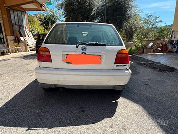 Vendiamo Volkswagen Golf bianca terza serie. Anno 1996. Cilindrata 1600; 74 kw. 100.000 km. Condizioni come da foto, gomme nuove, motore, cambio e frizione in ottimo stato. Finestrino e aria condizionata difettosi. Macchina marciante. Prezzo indicativo. Valutiamo offerte.