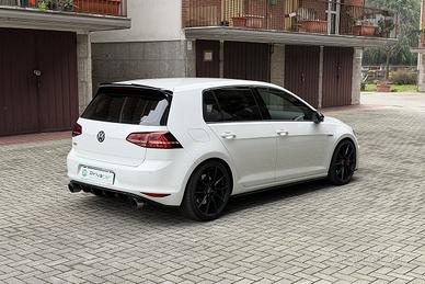PERIZIA DELL'ESPERTO PRIVACAR: Stupenda Volkswagen Golf GTI presentata in uno stato impeccabile. Vettura secondo proprietario, il quale vende per cambio segmento. Vettura tenuta da amatore, tagliandi regolari ogni 8.000km, ultimo svolto in data 12/2025, seguita da MP Racing. Tra le dotazioni di spicco troviamo: fari automatici bi-xenon, sensore pioggia, cruise control & limitatore di velocità, infotainment con CarPlay/Android Auto, climatizzatore automatico bi-zona, volante & sedili in alcantara/pelle, fari posteriori Full-LED, sensori di parcheggio posteriori, ruotino di scorta e tante altre. Preparazione STAGE 3: mappa 95 ottani, aspirazione, turbo IS38, scarico completo Milltek, intercooler, frizione rinforzata, assetto a ghiera, barre duomi anteriore/posteriore, impianto frenante Brembo 6 pompanti, cerchi Motec da 19" ultraleggeri. Tutte le parti in plastica nere verniciate lucide. Vettura proposta con garanzia di conformità legale per 12 mesi inclusa.