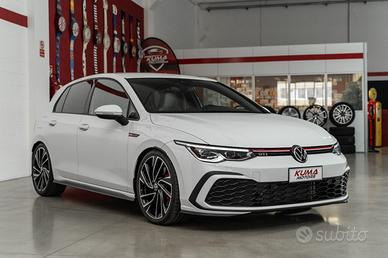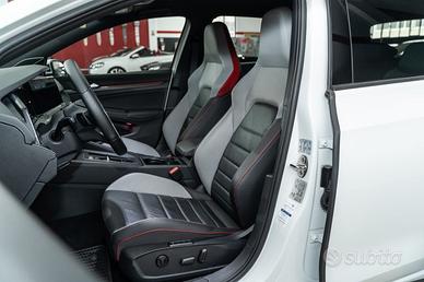 · volante sportivo riscaldabile elettricamente in pelle traforata con comandi touch, badge GTI centrale ed inserti rossi