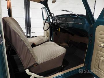 Sedili in tessuto beige, Pannelli in sky beige, Moquette al pavimento in bouclet beige, Specchio esterno lato guida cromato, Cerchi in ferro con calotte cromate VW, Paraurti con rostri cromati, Cruscotto in ferro in tinta carrozzeria