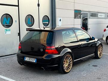VW GOLF R32 DA ESPOSIZIONE!!! Anno: 2002 Motore: 3.2 benzina Potenza: 240 CV / 177 kW Cambio: manuale 6 rapporti Chilometraggio: 202.000 km Interni in pelle Sedili Recaro originali in pelle riscaldati Oltre 20.000 € di modifiche!!! Cerchi in lega R19 Vossen forgiati (8.000 €) Impianto frenante Brembo a 6 pistoncini Freni nuovi Assetto Bilstein ad aria con telecomando Roll bar omologato per strada Scarico inox Volante in pelle/carbonio rosso con logo R Tetto interno in Alcantara Verniciatura integrale perlata nero/marrone con riflessi oro (da vedere dal vivo) Parafanghi anteriori in carbonio Tutto omologato a libretto! Tanto altro! Vettura da expo / per appassionati! Dotazioni: Fari bixeno Vetri privacy Doppie chiavi con telecomando Vetri elettrici Climatronic Revisione valida fino a: 06/2027 Passaggio di proprietà a carico dell’acquirente Consegna con tagliando completo e sanificazione inclusa Possibilità di passaggio di proprietà o radiazione per export (a carico dell’acquirente) Per maggiori informazioni contattateci anche via WhatsApp. Possibilità di videochiamata per visionare l’auto a distanza. Si riceve su appuntamento – chiamare sempre prima! Hai un’auto da permutare o rottamare? Richiedi subito una valutazione!