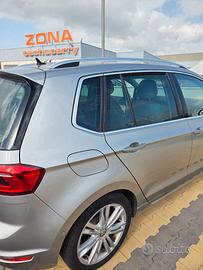 Volkswagen Golf Sportsvan 1.4 TSI Highline, 125 CV anno 2015, colore Tungsten Silver, unico proprietario, tagliandi sempre ufficiali VW certificati. Cerchi in lega 17" con bullone antifurto, pneumatici 225/45 R17 Bridgestone Turanza in buone condizioni, assetto ribassato, clima automatico bi-zona + posti posteriori, navigatore satellitare Discover Pro con mappe Europa aggiornabili, sistema multimediale touch da 8", volante sportivo in pelle a 3 razze, cruise control, sensori di parcheggio anteriori e posteriori, retrocamera, park assist (sistema di parcheggio automatico), mancorrenti al tetto colore argento anodizzato, cristalli posteriori oscurati, fari bi-xeno adattivi, luci diurne a LED e luci di svolta, ruota di scorta dimensioni ridotte, da 16", interni colore beige, schienale passeggero completamente ribaltabile per carichi lunghi, prese usb anteriori e posteriori, display multifunzione a colori, sensore pioggia, sensore crepuscolare, numerosi vani porta oggetti con sportello e tavolini dietro i sedili anteriori, mirror pack, specchietti regolabili, ripiegabili, e riscaldabili elettricamente. Driving profile selection (Eco/Normal/Sport/Individual), gancio di traino semi automatico, sistema controllo pressione pneumatici. Vasca baule originale Golf in gomma. Auto sempre rimessata al coperto, ottime condizioni, ad eccezione di un piccolo urto sulla parte anteriore destra, come da foto n. 6. Disponibile per qualsiasi prova. Km. 138.500, prezzo 7.900 Euro.