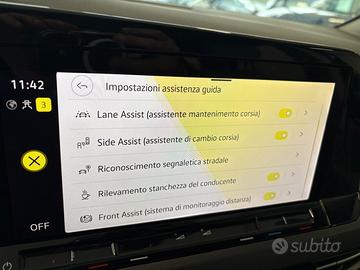 ACCESSORI: cerchi in lega 17'' Ventura, paraurti e maniglie in tinta carrozz., fari All Weather e luce svolta, proiettori direzionali IQ. Light Led Matrix (con HBA), rilevatore ostacoli ant.re e post.re (Park Pilot), retrovisori esterni regolab., ripieg. e riscaldab. elettr., climatizzatore autom. trizona (Air Care Climatronic), modulo mp3 con ingr usb Type C, display touch (con radio DAB, connettività per smartphone wireless, predisp. navigazione e vivavoce bluetooth), wireless smartph. charg., Digital Cockpit Pro 10.25'', sensore luci, volante in pelle multif. con paddle cambio, Adaptive Cruise Control, airbags, abs , asr, eds, esc, hba, Lane Assist, Front Assist, Emergency Assist, Side Assist, Traffic Sign Recogn., rilevam. stanchezza conduc., keyless GO, 4 vetri elettr., freno di stazion. elettr., sedili in tessuto/microfibra ergoActive regolab. elettr. con memorie. ErgoComfort, inserti decorativi New Brushed Dark Metal.