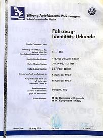 Certificato originalità VW presente.