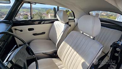 Rarissima opportunità di acquistare un autentico Maggiolino Karmann Cabriot del 76, nella combinazione cromatica più ricercata e iconica che esista: carrozzeria nera con cappotta color panna. Un esemplare che non passa inosservato, che racconta una storia e la fa vivere ogni giorno. Completamente restaurato nei minimi dettagli, in condizioni eccellenti, non un'auto da rimessaggio, ma una vettura vissuta, amata e mantenuta con cura, utilizzata quotidianamente con affidabilità totale. 🔧 Meccanica Il motore 1300cc con carburatore Solex originale è in stato eccellente: avviamento impeccabile. La meccanica è stata seguita con manutenzione costante e puntuale — chi conosce i Maggiolini sa quanto conti avere una storia di manutenzione seria alle spalle. 🪑 Interni Gli interni rivestiti in pelle panna sono in ottime condizioni, puliti e curati. La plancia e i pannelli impeccabili conservano l'atmosfera originale dell'epoca. La cappotta funziona perfettamente, scende e sale senza problemi — un dettaglio non scontato su un'auto di questa età. 🏗️ Carrozzeria Fondi ottimi, senza ruggine passante. Un'auto che ha beneficiato di un restauro serio, non di una semplice "rinfrescata" cosmetica. 💍 Un investimento, non solo un'auto Questo Maggiolino viene regolarmente noleggiato per matrimoni, generando un'entrata costante nel tempo. Chi acquista non compra solo un'auto storica bellissima — compra anche un'attività già avviata e apprezzata. E come tutti sanno, i Maggiolini Karmann Cabriolet originali sono tra le auto d'epoca più rivalutati nel tempo: il loro valore di mercato cresce anno dopo anno, una delle poche auto che si apprezzano finanziariamente. - Anno1976 - Cilindrata1300cc - CarburatoreSolex originale - ColoreNero/ Cappotta Panna - InterniPelle Bianca - CondizioniOttime – Restaurata - Uso attualeQuotidiano + Noleggio matrimoni Auto visionabile su appuntamento. Seria trattativa solo con acquirenti realmente interessati. No curiosi e sognatori