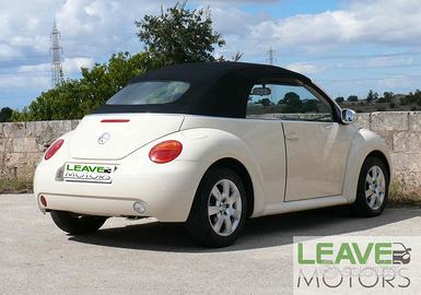 VOLKSWAGENNEW BEETLE 1.6 CABRIO Leave Motorspropone in conto vendita E SU APPUNTAMENTO divertente vettura cabrio in condizionigenerali fantastiche. Ideale anche per la guida dei neo patentati. Carrozzeria inottime condizioni, vernice color avorio pastello, nessun difetto di rilievo. Tettoin tela nera ad apertura manuale. Ruote in lega leggera da “16 con finitura colorargento, pneumatici con battistrada al 60%. Interni originalie ottimamente mantenuti, selleria in tessuto in due tonalità di grigio, nessundifetto. Plancia accessoriata con climatizzatore, autoradio, airbag. Meccanica inordine. Eseguito service a 110.700 km, pronta a viaggiare. Documenti in regola per trasferimento di proprietà. Disponibileper visita e prova SOLO su appuntamento chiamando al anche WhastApp. Possibilità difinanziamento personalizzato anche senza anticipo da 12 a 84 mesi. Disponibilialtre info, foto e video a richiesta. Segui anche la nostra pagina Facebook "Leave Motors Ragusa"