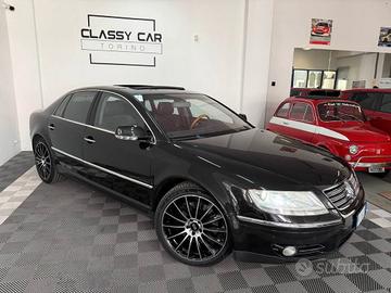 Volkswagen Phaeton 6.0 W12 4motion tiptronic Auto unica in Italia: la Phaeton 6.0 W12 rappresenta l'apice della costruzione Volkswagen dei primi anni 2000, proprio il momento in cui la costruzione automobilistica mondiale sfornava le auto dalla qualita' costruttiva migliore della storia. Costruita per sfidare BMW e Mercedes nel campo delle vetture di lusso, la Phaeton e' stata progettata senza limiti di budget. Il livello di attenzione al dettaglio e' spiegata benissimo dagli oltre 100 brevetti univoci creati da Vw appositamente per lei. Il motore di questo esemplare rappresenta a pieno il cuore perfetto per una vettura cosi' incredibile. Il W12 da 6 litri, usato in precedenza solo per un prototipo di auto supersportiva, e' stato creando unendo due VR6: il risultato e' un motore piu' corto di un V12 tradizionale ma con la medesima potenza vellutata. 450cv gestiti attraverso la trazione integrale 4motion e il cambio automatico, un suono unico e tanta tanta coppia sempre disponibile, l'auto perfetta per l'aristocrazia tedesca. La scocca, dalla rigidita' torsinale record, fu usata anche da Bentley. A livello di tecnologia troviamo tutto quello che puo' venirvi in mente: i sedili, rivestiti in pelle di massima qualita', sono tutti e 4 a regolazione elettrica, riscaldati e raffreddati. Gli interni sono rifiniti in vero legno a contrasto. Il tettino apribile ha funzione di pannello fotovoltaico per aiutare l'elettronica di bordo, una vera chicca. Le sospensioni sono regolabili in altezza e durezza, climatizzatore automatico a 4 zone, cruise control, sensori di parcheggio anteriori e posteriori, cruise control, vivavoce, navigatore, sistema di disappannamento per vetri laterali, radar anticollisione, funzione Sport per cambio e sospensioni e tantissimo altro. Ancora oggi moderna e molto comoda, prestazioni devastanti e tantissimo stile per persone che vogliono distinguersi davvero con un mezzo per esperti. Chilometraggio certificato, documenti prese Offerta n. 103-1