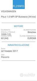 ISSIMA!!! Volkswagen Polo 1.0 MPI 5 porte BUSINESS - EURO 6- HA PERCORSO CIRCA 9000 KM ALL'ANNO!!! ( auto dai consumi molto bassi, DATI DELLA CASA MADRE- 25 km al litro, (velocità media 84 km orari) e tutto questo grazie allo straordinario motore a tre cilindri benzina) -FOTO ULTIME 2 REVISIONI-UNICA PROPRIETARIA -BOLLATA FINO AL 01-2027-OK NEOPATENTATI- KM 94000 "ASSOLUTAMENTE O-RI-GI-NA-LI", NIENTE TARGHE NASCOSTE!! QUALSIASI VERIFICA. SE RICHIESTO INVIO COPIA LIBRETTO CIRC. FOTO ULTIMA REVISIONE FATTA LI 03-2024 A KM 87000 - CARROZZERIA TAPPEZZERIA E MECCANICA IN OTTIME CONDIZION. Cilindrata 1000 MPI, KW 44--CV 60- CRUIS CONTROL, RADIO TOUCH CON AUX-USB E TELEFONO BLUETOOTH DI SERIE, COMPUTER--HILL HOLDER, sistema elettronico, gestito dall'ESP, che assiste automaticamente il guidatore nelle partenze in salita-- SEDILE ANTERIORE REGOLABILE IN ALTEZA, ISOFIX, SPECCHI ESTERNI ELETTRICI, ALZAVETRI ELETTRICI, 2 TELECOMANDI APRIPORTA, GOMME SEMINUOVE. Interni molto curati, Igienizzati Professionalmente, Non Fumatore, scrupoloso controllo generale prima della consegna, 1 ANNO DI GARANZIA, QUALSIASI PROVA, TUTTA FINANZIABILE. -----ANCHE FINANZIAMENTO A RATE FINO A 5000,00 SENZA BUSTA PAGA, ANCHE SENZA NESSUN REDDITO!!!! La Nostra Attivita' ci coinvolge con una grande passione ultratrentennale. Facilmente Raggiungibili a 1km dall'uscita Tolentino Ovest della superstrada Civitanova Marche - Foligno. a 5 min. dalla Stazione FFSS di TOLENTINO