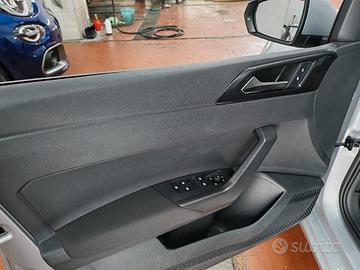 Climatizzatore Manuale, Scomparti portaoggetti nelle porte, Tasche portaoggetti agli schienali dei sedili anteriori, Vano portaoggetti sotto il sedile del passeggero, Luci interne con spegnimento ritardato con 2 luci di lettura anteriori e 2 posteriori, Illuminazione vano bagagli, Sedile conducente e passeggero regolabile in altezza, Volante multifunzione in pelle, Bracciolo anteriore, Specchietti di cortesia illuminati nelle alette parasole, Filtro antipolvere e antipolline, Tappetini anteriori e posteriori in materiale riciclato, Sedili posteriori con schienale ribaltabile e sdoppiabile asimmetricamente, Pomello della leva del cambio in pelle, Fondo vano bagagli in 2 livelli, regolabile in altezza, Impugnatura leva freno a mano in pelle, Ready for We Connect e We Connect Plus, Specchietto retrovisore esterno lato conducente asferico, Specchietto retrovisore esterno lato passeggero convesso, Streaming & Internet (volume dati disponibile a pagamento), Triangolo di emergenza, Predisposizione ISOFIX per seggiolini sui sedili posteriori e passeggero anteriore, Predisposizione per telefono cellulare con Bluetooth, Kit antiforatura con compressore a 12 Volt ed ermetizzante per pneumatici, Inserti decorativi "Lava stone black", Digital Cockpit da 8", Freni a tamburo posteriori, Chiusura centralizzata con telecomando, Bulloni antifurto, Radio "Ready 2 Discover" con display touchscreen 8" (predisposizione per la navigazione), 6 Altoparlanti, Ricezione radio digitale DAB+, Cerchi in lega "Essex" 5,5 J x 15" con pneumatici 185/65 a bassa resistenza al rotolamento, 2 Ingressi USB-C, 2 Ingressi USB-C nella parte posteriore del bracciolo con la sola funzione di ricarica, App-Connect con funzione wireless, Sistema Start&Stop con recupero dell'energia in frenata, Paraurti in colore carrozzeria, Airbag testa,