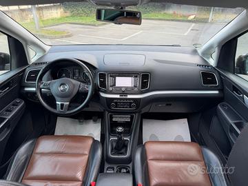Volkswagen Sharan 2.0, immatricolata 06/2011, alimentazione diesel, cambio manuale a 6 rapporti, CV 170 (125 kW), KM 231.000, EURO 5, 7 posti. Display touch screen con radio Media, CD, MP3, AUX, Bluetooth, navigatore con traffico, funzione telefonica e impostazione vettura con volante multifunzione full optional in pelle con speed limit. Controllo computer di bordo multifunzionale. Pulsante bagaglio con apertura e chiusura elettronica, pulsanti apertura e chiusura porte posteriori, ESP off, Start&Stop off e regolazione pressione pneumatici. Sedili in pelle parzialmente neri e marrone, con regolazione cuscinetti e posizione con memoria e riscaldati + sedili posteriori con tavolino. Finestrini (4) e specchietti con regolazione elettrica, tettuccio panoramico con apertura, cerchi in lega Volkswagen prima scelta e gomme nuove, fari fendinebbia. Sistema di sicurezza ABS/ESP, airbag multipli, servosterzo, sensori parcheggio 360°, DPF/FAP. Interni tenuti in condizioni eccezionali, carrozzeria impeccabile, meccanica in ordine, senza lavori da eseguire.