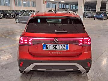 Autovettura praticamente ***NUOVA***, solamente Immatricolata a Km. Zero il 29 Aprile 2024!!! Autovettura Nazionale (NO IMPORTAZIONE come la maggior parte delle Volkswagen T-Cross in commercio)!!! Autovettura in garanzia ufficiale della casa Volkswagen (Extra Time) estesa fino al 29 Aprile 2028/Max 40.000 Km.!!! ***PREZZO REALE (Escluso passaggio di proprietà), NON VINCOLATO a formule di finanziamento, rottamazione o pacchetti assicurativi obbligatori***!!! Autovettura dotata della motorizzazione **999 c.c. TSI Turbo Benzina (3 Cilindri) da 116CV (85kW) EURO 6E con sistema Start&Stop**!!! Cambio: Manuale a 6 Marce Principali dotazioni di serie che caratterizzano l'allestimento **Style**: - Digital Cockpit Pro: Quadro strumenti digitale e a colori da 10,25"; - ABS ESC ASR Hill Start Assist; - Airbag lato guidatore Airbag lato passeggero Airbag laterali Airbag a tendina per la testa; - Radio **Ready2Discover**: - Radio Originale FM con ricezione DAB e con comandi al volante - Display touchscreen a colori da 8" - Hotspot Wi-Fi - Bluetooth; - App Connect: Connettività wireless per Apple CarPlay Android Auto; - Volante in pelle a 3 razze multifunzione con inserti in ""Satin Cromo""; - Sedile guidatore e passeggero Comfort Sport regolabili in altezza; - Attacchi Isofix sul sedile passeggero anteriore e sul sedile posteriore; - Sedile posteriore scorrevole con schienale sdoppiabile (40/60); - Bracciolo centrale anteriore scorrevole con vano portaoggetti; - Pianale del vano bagagli regolabile su 2 livelli; - Fatigue Detection; - Front Assist con City Emergency Brake; - Traffic Sign Recognition; - IQ.Drive Pack: - Adaptive Cruise Control Limitatore di velocità - Lane Assist - Travel Assist; - Sensore crepuscolare fari; - Light Assist: Sistema di attivazione/disattivazione automatica dei fari abbaglianti; -