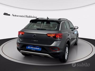 VOLKSWAGEN T-roc 1.5 tsi life color GRIGIO INDYUM/TETTO NERO del 2023. La vettura è alimentata a Benzina e ha un cambio Manuale.