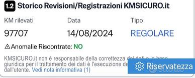 Prima revisione effettuata a km 97707 il 14/08/2024.
