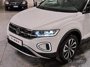 Crossover praticamente ***NUOVO***, solamente Immatricolato a Km. Zero il 28 Novembre 2024!!! Veicolo Nazionale (NO IMPORTAZIONE come la maggior parte delle Volkswagen T-Roc in commercio)!!! Veicolo in garanzia ufficiale della casa Volkswagen (Extra Time) estesa fino al 28 Novembre 2028/Max 40.000 Km.!!! ***PREZZO REALE (Escluso passaggio di proprietà), NON VINCOLATO a formule di finanziamento, rottamazione o pacchetti assicurativi obbligatori***!!! Crossover dotato della motorizzazione **999 c.c. TSI Turbo Benzina (3 Cilindri) da 116CV (85kW) EURO 6E con sistema Start&Stop**!!! Cambio: Manuale a 6 Marce Colore Esterno: Pure White Pastello/Tetto a contrasto in Nero Pastello (0QA1) Selleria interna: Microfibra **ArtVelours** e tessuto ""Dark Grey"", con inserti in eco-pelle ""Black"" e con cuciture a contrasto ""Grigio Chiaro"" Dashpad: ""Deep Iron Grey"" Inserti decorativi interni: ""Deep Iron Grey"" Rivestimento sui pannelli interni delle portiere anteriori: Eco-pelle ""Black"" con cuciture a contrasto ""Grigio Chiaro"" Cerchioni: Cerchi in lega 7J x 17" **Johannesburg** ""Black"", con superficie diamantata, a 5 doppie razze Principali dotazioni di serie che caratterizzano l'allestimento **Style**: - Alzacristalli elettrici anteriori e posteriori; - Chiusure centralizzate con telecomando; - Servosterzo elettromeccanico in funzione della velocità; - Digital Cockpit Pro: Quadro strumenti digitale e a colori da 10,25"; - Climatronic: Climatizzatore automatico Bi-zona con display touch; - ABS ESC ASR Hill Start Assist; - Freno di stazionamento elettronico con funzione Auto-Hold; - Airbag lato guidatore Airbag lato passeggero Airbag laterali Airbag a tendina per la testa; - Radio **Ready2Discover**: - Radio Originale FM con ricezione DAB e con comandi al