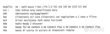 - VersioneT-Roc 2.0 TDI SCR 150 CV DSG Life