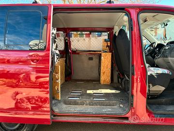 Volkswagen T5 kombi Transporter 2.5 TDI/174CV Anno 2006 Km 266000 Omologato autovettura 9 posti, ma sono presenti solo i 2 sedili anteriori. Il vano posteriore presenta una camperizzazione leggera composta da letto matrimoniale apribile che sovrasta un gavone di carico e una cuccia per cani, mobiletto lavandino con pompa elettrica e taniche carico/scarico, pannello solare, regolatore di carica e batteria servizi, portapotti e cinebasto (attrezzatura del valore di circa 800€ che posso lasciare o rimuovere in toto). Lavori eseguiti a gennaio 2026: - sostituzione Albero a camme (1700€) - sostituzione semiasse anteriore sx e rifatte sospensioni (650€) Doppio set gomme: - invernali Momo al 95% (messe a fine gennaio, sono praticamente nuove); - 4 stagioni anteriori nuove (messe a fine marzo), posteriori al 80%. Sempre revisionato e tagliandato. Il furgone è perfettamente funzionante, viaggia e consuma poco, presenta come si vede da foto qualche lieve segno sulla carrozzeria di normale usura. Lo vendo (aimè) per passaggio a camper puro.