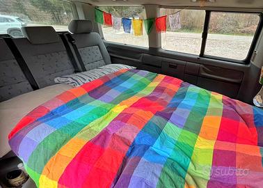 Il veicolo è stato trattato con cura, utilizzato per molti viaggi e compagno fedele di escursioni e avventure in montagna, mantenendo sia la versatilità di una comoda auto da tutti i giorni che di un pratico van.
