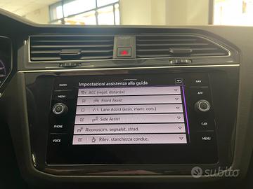 Volkswagen Tiguan 2.0 TDI 150cv DSG R-Line Anno 2021 km 113.000 Rivestimento sedile tessuto Sardegna / micropile Art Velours MSR· Sistema di assistenza alla guida Controllo automatico della distanza (ACC) Sistema di assistenza alla guida: regolazione degli abbaglianti (Light Assist) (Front Assist) con funzione di frenata di emergenza in città, Riconoscimento della segnaletica stradale, Assistente al cambio di corsia (Side Assist) con assistente al parcheggio. Interfaccia Bluetooth per telefono cellulare Servizi App-Connect (Apple CarPlay, Android Auto) Ricezione radio digitale (DAB ) Interfaccia multimediale 2 x USB (tipo C) nella parte anteriore e 1 x porta di ricarica USB (tipo C) nella parte posteriore della console centrale Climatronic 3 zone Fari IQ Light LED (luce di svolta dinamica) Sistema di navigazione 3D Specchietti esterni elettr. regolabile e ripiegabile (Park Assist)· anteriore e posteriore Telecamera posteriore Digital Cockpit (display strumenti completamente digitale) Volante multifunzione in pelle R-Line con paddle Mancorrenti sul tetto neri IQ.Drive pack Black style pack Listelli sottoporta anteriori (alluminio) illuminati R-Line Finestrini laterali posteriori e lunotto oscurati Cerchi in lega da 19" Black Volkswagen Ruotino di scorta Portellone posteriore elettronico Sistema di avviamento Keyless Illuminazione ambientale (30 colori). Autovetture in pronta consegna con possibilità di finanziamento Ufficio Lucio Salvatore Prezzo esposto escluso il costo del passaggio di proprietà