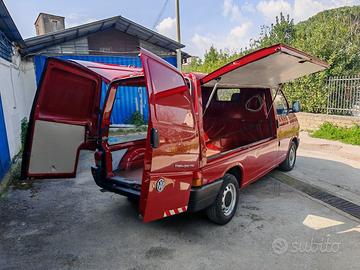 Volkswagen T4 Transporter 2.4 diesel 5 cilindri aspirato, anno 1990, immatricolato autovettura e modificato come in foto dal primo proprietario, iscritto ASI, no bollo, assicurazione e passaggio proprietà ridotti. Servosterzo vetri elettrici e chiusura centralizzata, senza condizionatore. Circa 350.000 km, meccanica e motore in buonissime condizioni, carrozzeria buona come in foto, piccole tracce di ruggine passaruota posteriore.