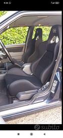 la macchina monta barre antitorsione, ammortizzatori bilstein e molle eibach, sedili anteriori omp e sedili posteriori originali in pelle sanissimi. macchina riverniciata circa due anni fa colore originale. fari ant. con lenti trasparenti e post oscurati. cerchi Comet da 17.