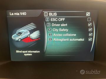 Volvo V40 Cross Country 2.0 D3 150 cv, anno 2016, allestimento Summum, colore Ocean Blue metalizzato, Euro 6b, cambio automatico a 6 rapporti, ABS, ESP, ASR, Hill Holder, tre modalità di guida selezionabili (Eco, Comfort e Sport), cruise control adattivo, limitatore di velocità, sensori di parcheggio anteriori e posteriori con telecamera, parcheggio automatico, mantenimento carreggiata, allarme colpo di sonno, visualizzatore segnali stradali, radar anticollisione con funzione frenante, monitoraggio angolo cieco, fari a LED con regolazione autoaddattiva, infotainment con radio con connettività Bluetooth, prese USB, Isofix, interni in pelle beige, poltrone anteriori riscaldabili con regolazione lombare, cerchi da 16" con gomme estive.