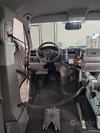 Caravelle Confortline T5 con adattamenti Guidosimplex per guida in carrozzina disabili (sali e guida) con pedana imbarco carrozzina, radiocomando gestione pedana apri/chiudi sportello, joystick per gestione sterzo, dispositivo gestione acceleratore freno, pulsantiera gestione cambio, freno stazionamento elettrico, vocal gestione servizi, carrozzina omologata per la guida + sedile originale per guida normodotato. Il veicolo viene venduto così come è.