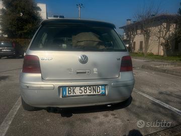 Vendo Volkswagen Golf 4 1.6 benzina (74 kW), causa passaggio ad un’altra macchina. L'auto ha 339.791 km ed è regolarmente marciante. Carrozzeria con ammaccatura sulla fiancata sinistra e graffi da parcheggio come da foto, che non pregiudica l'utilizzo..