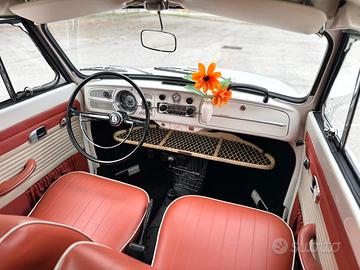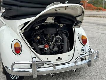 Volkswagen Maggiolino 1967 prima serie ("One Year Only"), Cabriolet con motore 1500cc serie H originale ("Supermaggiolino"), certificato CRS e iscrizione ASI a libretto. Modello raro prodotto per pochi mesi, con freni a disco anteriori di serie e componenti specifici introvabili: parabrezza, cofano post., paraurti, maniglie esterne con chiavi originali, maniglie alzavetri, filtro aria, borchie, cambio, semiassi, protezione cofano, supporti capotte, frecce, bracci tergi e spazzole. Tutto originale dell'epoca o NOS (no riproduzioni). Vetri marchiati VW Delodur e componentistica quasi interamente logata VW. Matching numbers motore/telaio, auto italiana da sempre (immatricolazione 03/1967), allestimento mercato Italia documentato con Birth Date e Data Sheet ufficiali Volkswagen.