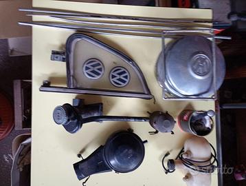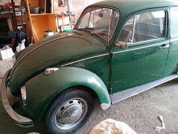 VW Maggiolino anno 1968, vetro piatto, targa originale. Tagliandato nel 2024, sempre conservato all'interno di un magazzino. Vendo con pezzi di ricambio recuperati da altro esemplare demolito. Oltre a quello in foto: portiera dx, tappezzeria portiera sx, maniglia e specchietto laterale portiera sx, vetri (anteriore, posteriore e laterali posteriori), parafanghi posteriori, paraurti posteriore, seduta sedile posteriore, quattro ruote complete, fari posteriori, sportellino e tappo carburante, posacenere, manovelle finestrini, cric, carburatore e vari pezzi motore. Prezzo trattabile