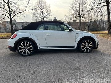 Maggiolino Cabrio 1.5 tsi cambio automatico dsg. Pacchetto R line. Cerchi Tornado j8 Volkswagen R line Interni full pelle nera Vienna Fanaleria bi xeno con led di posizione App connect Digital audio Broadcasting DAB Frangivento