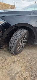 Vendo VW Polo con cambio automatico 1.0 benzina 95 CV dicembre 2022, 53.000 Km certificati, interni in tessuto neri, Tech Pack (Climatronic bi-zona, fari fendinebbia, Park Pilot), volante multifunzione in pelle con palette, navigatore satellitare, ruota di scorta, sensore luci, fari ant. e post. Full Led, Cruise Control, Front Assist, Lane Assist, Block Shaft originale montato dalla concessionaria VW, ultimo tagliando marzo 2026, gomme Pirelli con meno di 10.000 Km