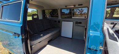 Volkswagen T3 Syncro (25JX21255) Anno febbraio 1988, 173000 km, blocchi differenziale anteriore e posteriore, omologato autoveicolo / privato trasporto promiscuo 8 posti, CRS ASI, secondo proprietario, motore jk 1600 turbo diesel. Lavori effettuati: verniciatura esterna; oscuramento vetri laterali e posteriore con pellicola certificata; specchietti truck; tappezzeria interna cielo cabina e interno, compreso cruscotto, in tessuto antracite Hannover Edition, configurato come multivan (panca letto e tavolo pieghevole); turbina nuova; pompa diesel revisionata; cinghia distribuzione, cinghia alternatore e pompa acqua sostituite; radiatore nuovo; tubi raffreddamento motori nuovi; pastiglie freni, pompa freni ate, ganasce tutto nuovo; scarico completo e silent block nuove; pompe frizione (master e slave) nuove; cuffie semiassi nuove; boccole leveraggio cambio nuove; revisione e sanificazione scatola ventilazione abitacolo con nuove guarnizioni e sostituzione ventola areazione. Mezzo verrà tagliandato prima della consegna.