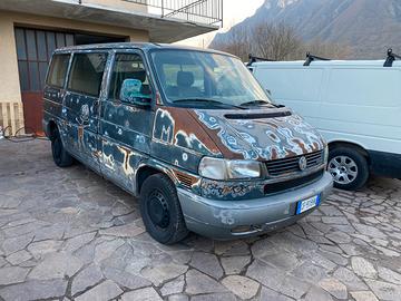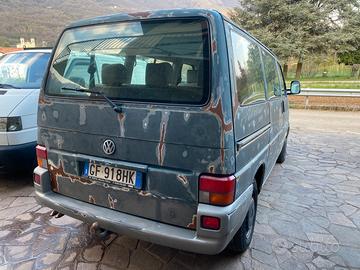 Vw Multivan T4 2.5 TDI 102cv. Interni completi e in ottime condizioni. Esterni come da foto. Motore gira bene e parte con mezzo giro di chiave. Ha clima avanti e dietro, gancio traino omologato a libretto e predisposizione batteria servizi. Presente anche il quarto cerchio in ferro non in foto. Vendo per cambio progetto. Revisione scaduta il mese scorso, prima di farla andrebbero siatemati i passaruota. Ottimo anche per chi ha bisogno dei ricambi. Vendo per cambio progetto. Il mezzo è trentennale quindi 30€ di bollo passaggio e assicurazione ridotti. Sono disponibile per chi sa di cosa stiamo parlando, sa come muoversi e non mi fa perdere tempo inutilmente.