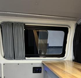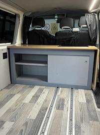 Volkswagen Transporter/Caravelle T5 1.9 TDI 75 kw del 2006 con allestimento semi camperizzato. Km 209000. Passo lungo (lunghezza 5,290 m, larghezza 1,904m). Immatricolato autovettura per trasporto di perosne e veicolo multiuso. Tre posti viaggio anteriori, sempre utilizzati con copri sedili. Dispongo anche di tre sedili singoli a sgancio rapido e cintura di sicurezza a tre punti che possono essere montati sui binari omologati presenti posteriormente. Luci fanali a led omologate. Finestrini posteriori oscurati omologati e tende interne, finestrino posteriore lato guidatore scorrevole. L’allestimento posteriore è completamente rimovibile realizzato artigianalmente su misura, composto da letto in legno, richiudi bile da due piazze ad una, con vano cassettoni e materassi su misura (attualemnte smontato e tenuto al coperto, facilmente montabile e fissabile solamente con due bulloni), mobile in legno con vani per oggetti, piano cottura con lavandino e fornello, il piano si può aprire esternamente per avere un tavolino esterno. Seconda batteria dei servizi e quadro per accendere le luci led e per la pompa dell’acqua, con prese usb e accendisigari. Sensori distanza posteriori. Autoradio touch bluetooth. Porta bici posteriore. Furgone sempre tenuto al coperto. Il mezzo presenta qualche normali segni di usuara sia internamente che esternamente. Disponibile per visione e prova.