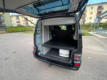 Volkswagen T4 California Westfalia del 2001, esemplare raro con preparazione ufficiale Oettinger (180cv a libretto/certificata). Un mezzo potente, affidabile e pronto per partire, curato nei minimi dettagli. š Meccanica e Manutenzione ⢠Motore: 2.5 TDI Oettinger da 180cv (prestazioni eccellenti e consumi ottimizzati). ⢠Chilometraggio: 285.000 km. ⢠Cinghia di distribuzione: Sostituita a 264.000 km. ⢠Stato: Tagliando appena eseguito, Revisione valida fino al 2027. ⢠Pneumatici: Cerchi in lega da 17" originali VW (omologati a libretto) + set di 4 cerchi in acciaio da 16" con gomme invernali. ⢠Gancio traino estraibile originale westfalia. ⢠Libretto tagliandi/service certificato Oettinger. š Allestimento Westfalia & Comfort ⢠Interni: Rari interni in pelle totale nera originali. ⢠Posti: Sedili anteriori girevoli e riscaldabili. ⢠Climatizzazione: Clima manuale anteriore con canalizzazione e comando posteriore. ⢠Cucina: Frigo a pozzetto, fornello a 2 fuochi, lavandino con doccetta estraibile per uso esterno. ⢠Riscaldamento: Webasto perfettamente funzionante. ⢠Posti Letto: 4, due nella panca posteriore. 2 nel Tetto a soffietto originale in ottime condizioni. ⢠Tendalino Fiamma F45S, nuovo. š ļø Tecnologia e Accessori ⢠Guida: Cruise Control, specchietti elettrici e riscaldati, vetri elettrici. ⢠Parcheggio: Sensori posteriori + Retrocamera (attivabile anche durante la marcia). ⢠Sicurezza: Dashcam anteriore con registrazione continua. Mezzo unico, informarsi del mezzo prima di fare offerte ridicole. Vendo non svendo.