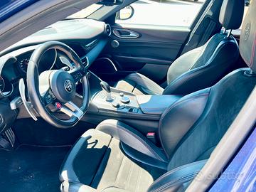 Sedili Sportivi in Pelle e Alcantara, Sedili anteriori con 6 regolazioni manuali, Inserti in carbonio su plancia, pannelli porta e tunnel centrale, Fari Bi-Xenon, Lavafari, DRL a LED, Gruppi ottici posteriori e di arresto a LED, Alfa TM Connect 8,8" RadioNav DAB, Sensori di parcheggio anteriori e posteriori, Telecamera posteriore di parcheggio, Colore esterno Blu Montecarlo, Cerchi in lega da 19'' bruniti a 5 fori, Fari posteriori a LED, Pinze freno rosse, Cornice cristalli esterna nera lucida, FWC Forward Collision Warning, AEB Autonomous Emergency Brake, LDW Lane departure warning, IBS Integrated Brake System, Blind Spot Monitoring con Rear cross path detenction, Alfa Active Suspension, Torque Vectoring.