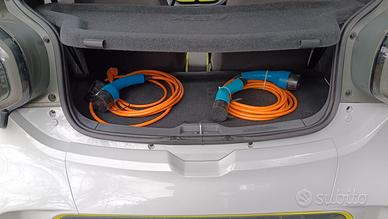 Due cavi per la ricarica, uno per le colonnine ed uno per ricarica domestica con presa schuko.