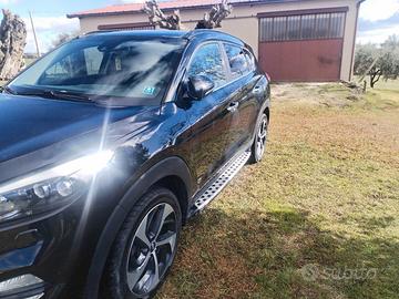Yunday tucson del 2016 con 170000 km, 4wd, nera, vetri pravacy, cerchi da 19 come ruota di scorta, gomme nuove, ful led interno esterno, sensori parcheggio anteriori e posteriori con retrocamera 360 , tetto panoramico apribile, clima bizona, doppie chiavi, sedili riscaldati, intelligenti, specchietto retrovisore interno crepuscolare, lavafari, accensione automatica e gestione intelligente dei tergicristalli, pedane alke portiere, apertura tuch alle maniglie, doppio allarme, cruise control velocità, assistenza per partenze in salita e discesa, gancio traino a libretto e a scomparsa, luci cortesia sotto gli specchietti. La macchina va benissimo, sempre rimessato in garage, la vorrei cambiare solo per passare ad altro tipo.