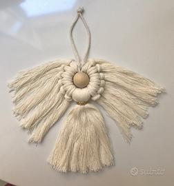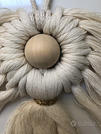 Мacramè "Angelo" Colore bianco Materiale: cotone, legno, filo d'oro. Forma: angelo Dimensioni: 18,0x16,0 cm.