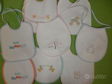 Disponibili sia per maschietto che per femminuccia. In questa inserzione è visibile la versione da maschietto. Ogni confezione contiene 10 pezzi, 10 ricami diversi, in diverse colorazioni di bordo.