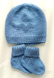 100% lana merino berretto e calzini neonato