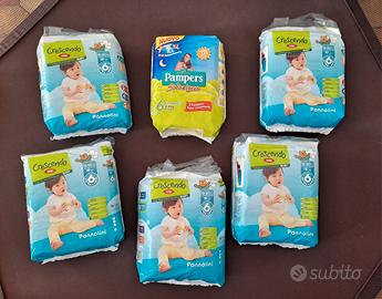 109 Pannolini taglia 6 come da foto, 19 pezzi in ciascuna confezione Coop, la confezione Pampers ne ha 14 - 6 confezioni in tutto - tutte nuove e sigillate.