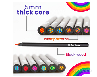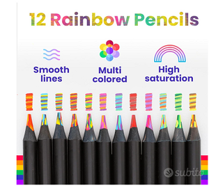12 matite colorate arcobaleno , pastelli multicolore effetto multiplo