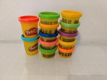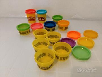Dodici contenitori di plastica con coperchio colorato, impilabili, Marca Play Doh - VUOTI - da utilizzare in modo creativo