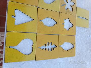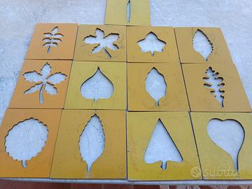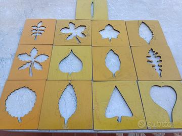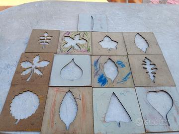 13 Pezzi Stencil di Foglie varie per disegno o pittura in legno plastificato, robusti, ognuna misura cm.14x14, usati ma in buone condizioni, vendo a 10 euro.