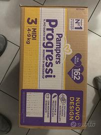 Vendo, causa inutilizzo poichè la bimba è cresciuta troppo velocemente, 162 Pannolini pampers progressi taglia 3 adatti tra i 4-9kg.