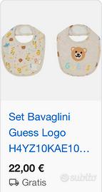 Bavaglini originale Guess 2 pezzi da 0/12 mesi nuovi mai usato con ancora il cartellino prezzo d’acquisto 22€