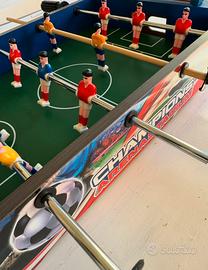 Biliardino blu: 4 stecche. Una stecca è stata sostituita con stecca legno e ha un giocatore in meno.